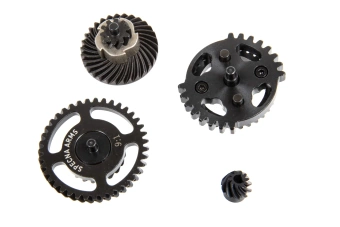 Conjunto de engranajes de acero de alta calidad con relación 9:1 en configuración DSG. – Es decir, Dual Sector Gear.